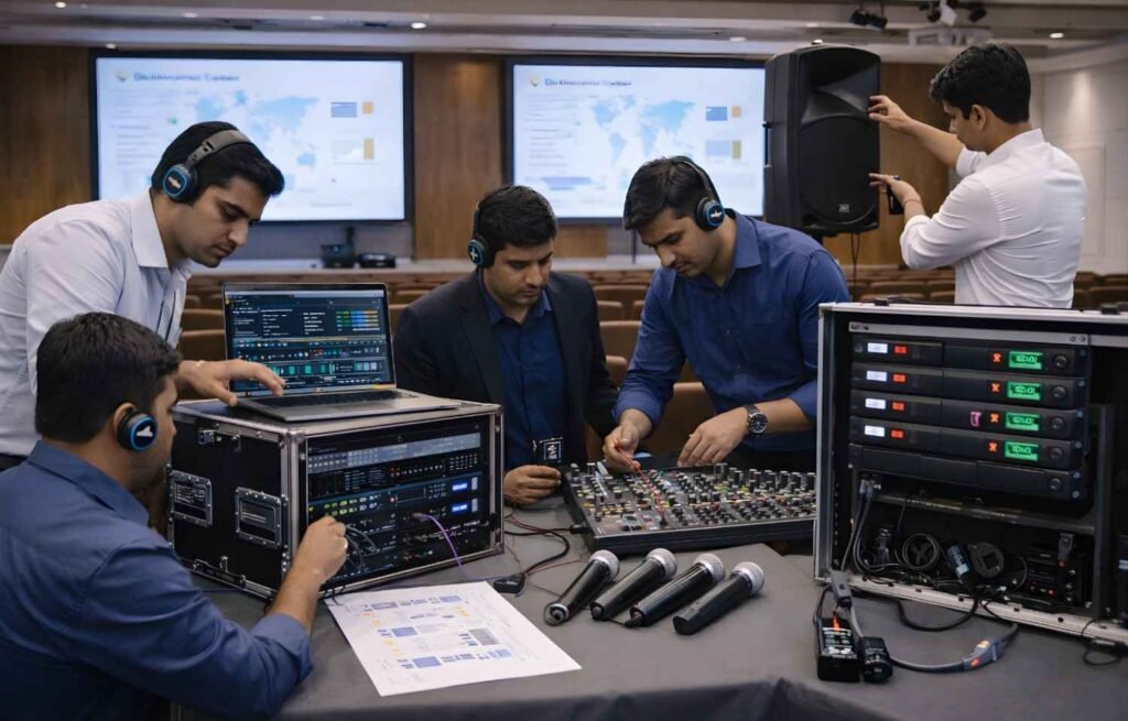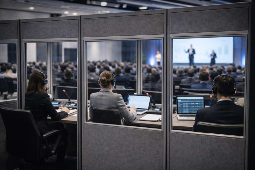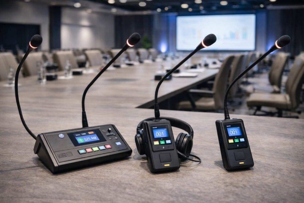 From interpretation booths and interpreter consoles to wireless receivers, delegate microphones, and silent conference systems, every component is selected and prepared to match the specific event requirement. Our technical approach ensures that audio remains clear, stable, and unobtrusive allowing participants to focus entirely on the discussion, not the technology.