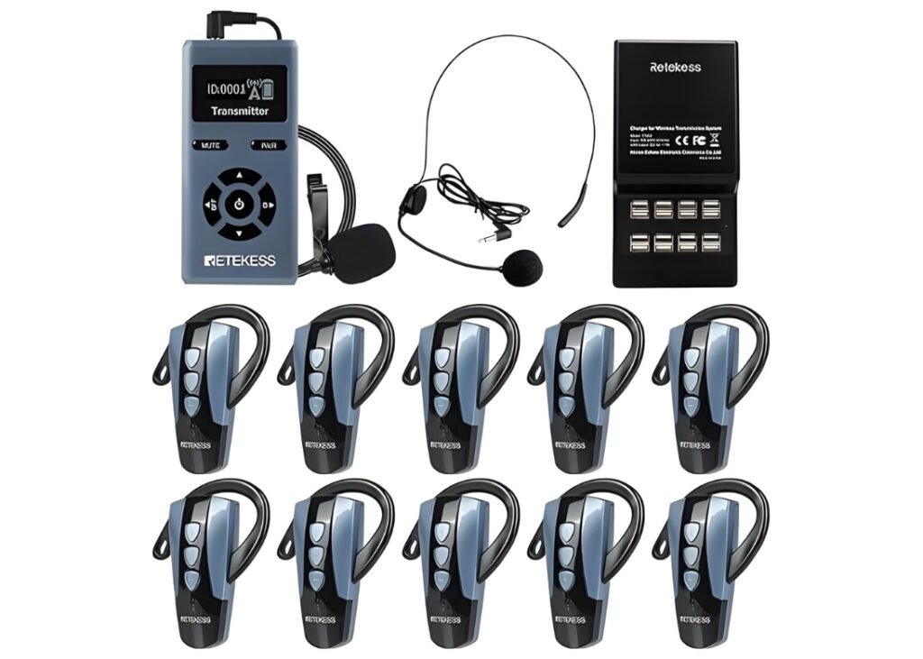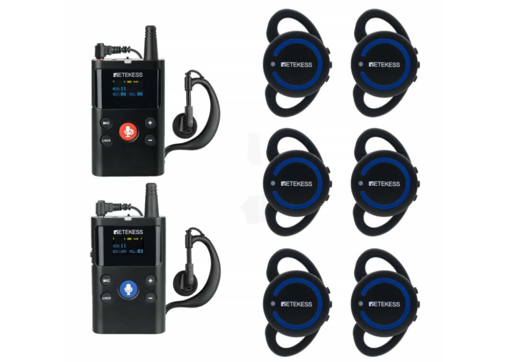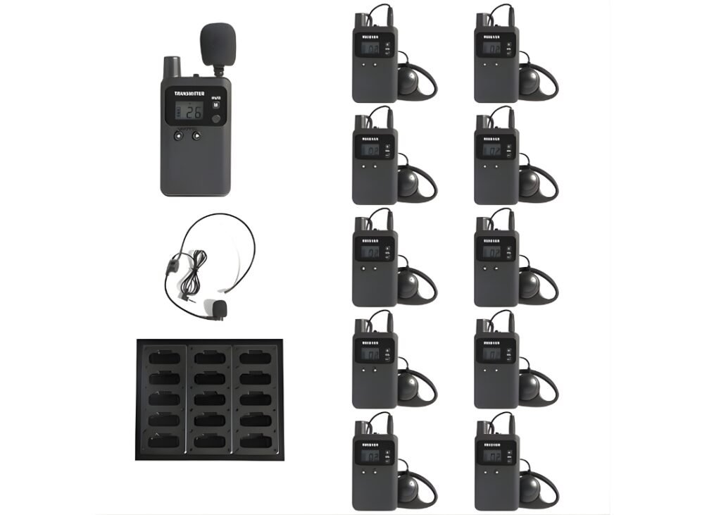 1-way, 2-way, and earhook tour guide systems for factories, institutions, training sessions, and guided group communication.