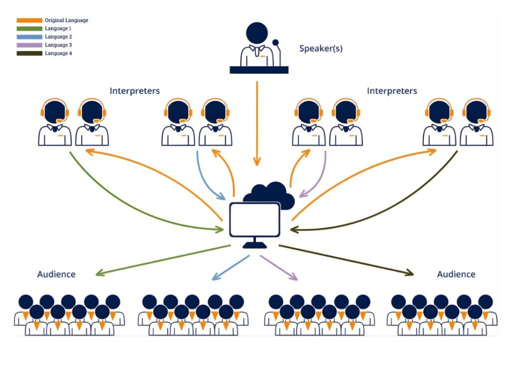 Events involving participants speaking multiple languages requiring accurate and reliable interpretation systems.