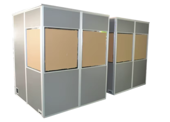 Soundproof and portable interpretation booths designed to provide controlled environments for interpreters during live events.